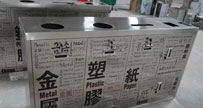 多面創意造型不銹鋼垃圾桶廠家生產工藝流程:創意圖紙設計,經確認后采用激光切割機輸入創意垃圾桶開料圖,就得到了制作這款創意垃圾桶的各部件材料。不銹鋼垃圾桶廠...