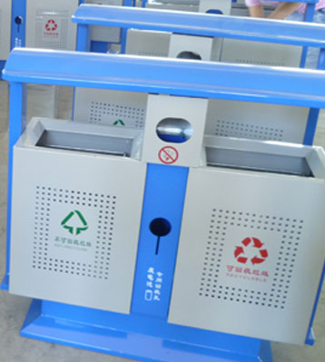 • 產品名稱:鋼板垃圾桶,又名奧運分類環保垃圾桶