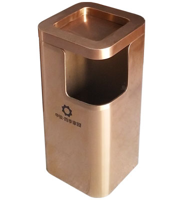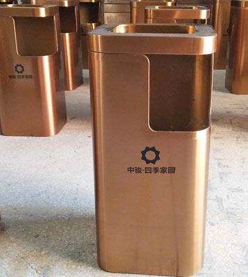 • 使用范圍:樓盤定制銹鋼電鍍玫瑰金垃圾桶表面光滑、亮麗,是樓盤、電梯口、寫字樓、學校、物業、賓館、酒店、機場、汽車站等擺放的首選。