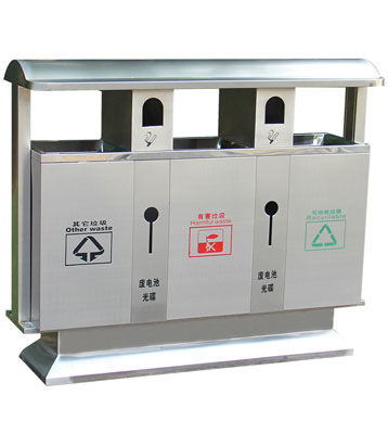• 使用范圍:市政戶外三分類不銹鋼垃圾桶表面光滑、亮麗,是電梯口、寫字樓、學校、物業、賓館、酒店、機場、汽車站等擺放的首選。