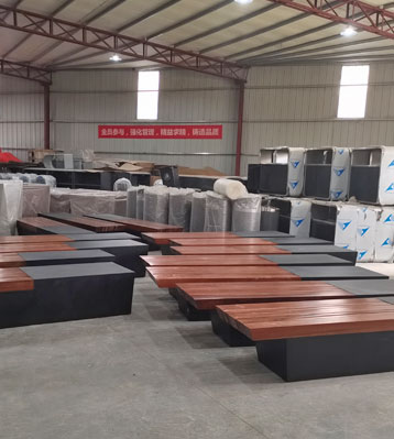 欣方圳室外不銹鋼休閑排椅廠家凳面防腐木材質制作流程示意圖,工藝領先,品質卓越,真正經久耐用。