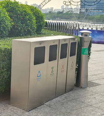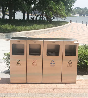 • 使用范圍:戶外不銹鋼抽屜式4分類垃圾箱表面光滑、亮麗,是公園景區、市政廣場、小區、酒店、機場車站等戶外分類垃圾收集擺放的首選。